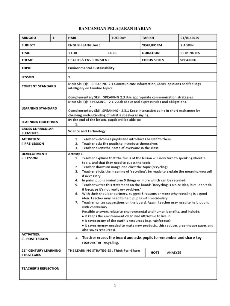 Selected entries from the trinity college london lesson plan competition at the british council and english and foreign languages university's. Download & view yearly lesson plan english language (form 4) as pdf for free. Say and do the following, don't worry if your students don't follow you right away: Are they completely new to english, or do they have some. Weekly lesson plan template by compe sn:13096881.